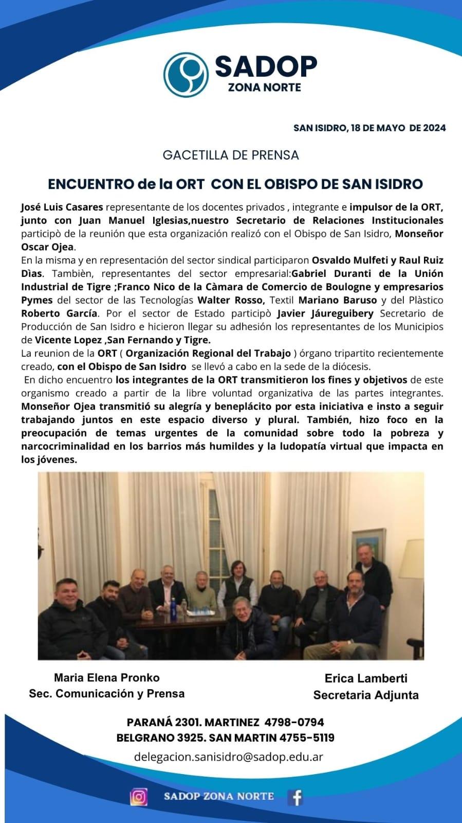 Encuentro de docentes con el Obispo de San Isidro 21 mayo, 2024 Informacion General, SAN ISIDRO 0 Compartilo en tus redes!