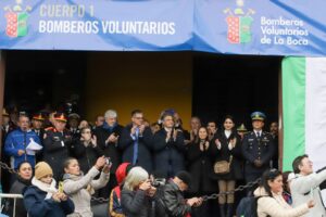 “La mejor manera de trabajar es en un sistema de seguridad profesional, rápido y dedicado, codo a codo con los bomberos voluntarios”, expresó Macri, quien este domingo participó del desfile de 40 cuarteles de la Ciudad en Avenida Pedro de Mendoza y Martín Rodríguez. Estuvo acompañado por la presidenta de la Comuna 4, Silvia Millara. Este domingo los Bomberos Voluntarios de La Boca cumplieron 140 años.