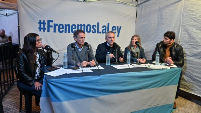 El ministro de Desarrollo de la Comunidad de la Provincia de Buenos Aires, Andrés Larroque, encabezó esta noche la vigilia en rechazo a la ley Bases que se lleva a cabo en la Plaza Congreso, y afirmó que este “es un momento parteaguas de nuestra historia”, porque de aprobarse la iniciativa impulsada por el gobierno nacional “podemos entrar en una Argentina muy distinta a la que conocemos, en una desfiguración de nuestro país”, y en ese sentido declaró que “es imprescindible» evitar su sanción.