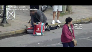 Todo comenzó cuando la víctima del hecho reconoció al sospechoso, cuando circulaba por Ruta 197 y Colombia. En las imágenes se puede ver que lo intercepta y comienza a golpearlo.