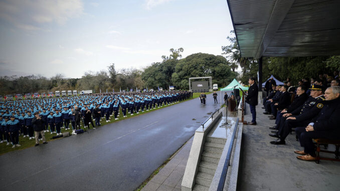 El gobernador de la provincia de Buenos Aires, Axel Kicillof, junto al ministro de Seguridad, Javier Alonso, tomó este miércoles el juramento de fidelidad a la bandera nacional a 1.848 cadetes y futuros oficiales sub ayudantes que finalizarán este año sus procesos de formación en la Escuela de Policía Juan Vucetich.