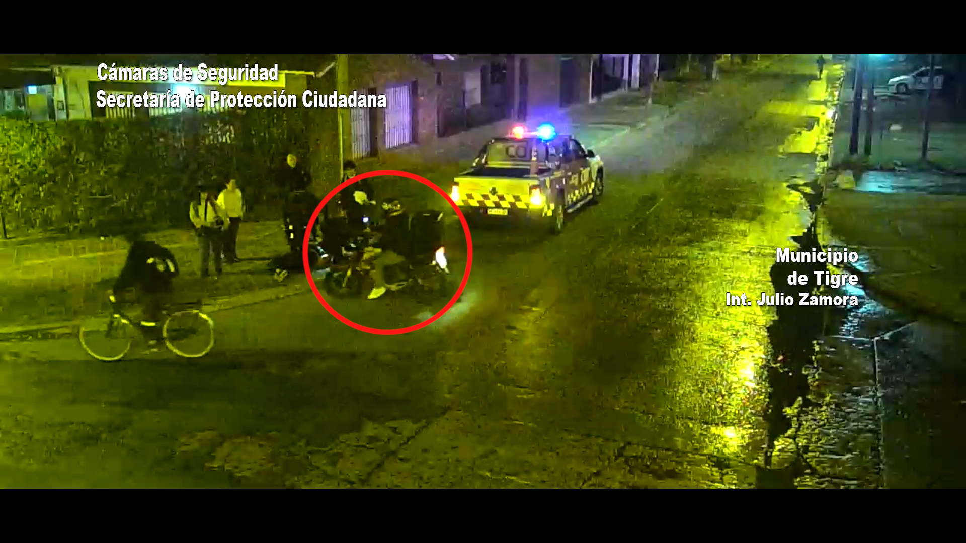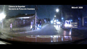 Inmediatamente, los operadores del centro de monitoreo visualizaron el hecho y alertaron a los móviles para que acudieran al lugar. Minutos más tarde, el conductor de la moto regresó al sitio.
