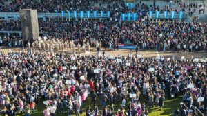 «Todas las escuelas juntas prometiendo honor y lealtad a la bandera argentina. Hoy es un día muy importante y lo vamos a recordar para siempre. La bandera es un símbolo de la historia y familias que compartimos. Es un símbolo que habla de un mismo lugar. La Argentina es nuestra familia grande, y San Isidro es una pequeña familia. Cuando prometemos lealtad a la bandera no es solamente recordar una fecha patria. Es comprometernos a hacer una patria grande. Este país lo hacemos entre todos», afirmó Lanús.