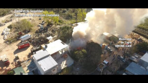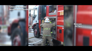Tras visualizar el siniestro – producido en la intersección de las calles Ameghino y General López – los operadores de la base de monitoreo solicitaron la rápida asistencia de los bomberos voluntarios; como también todo el dispositivo local: Defensa Civil, SET, y Tránsito.