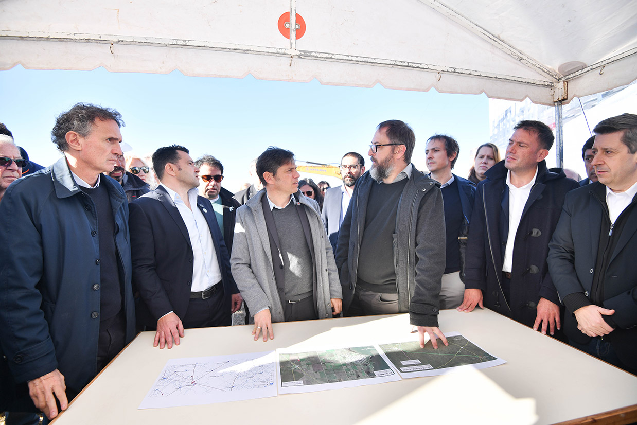 El gobernador Axel Kicillof encabezó este viernes el acto de inicio formal de las obras de construcción de la Estación Transformadora (ET) Guaminí y la ejecución de la línea de alta tensión que la vinculará con Coronel Suárez, junto al ministro de Infraestructura y Servicios Públicos, Gabriel Katopodis; y el intendente local, José Nobre Ferreira. Además, anunció que la Provincia se hará cargo de obras paralizadas por el Gobierno nacional en el distrito y, acompañado por el presidente del Banco Provincia, Juan Cuattromo, inauguró el nuevo edificio de la sucursal de la banca pública en la localidad de Casbas.