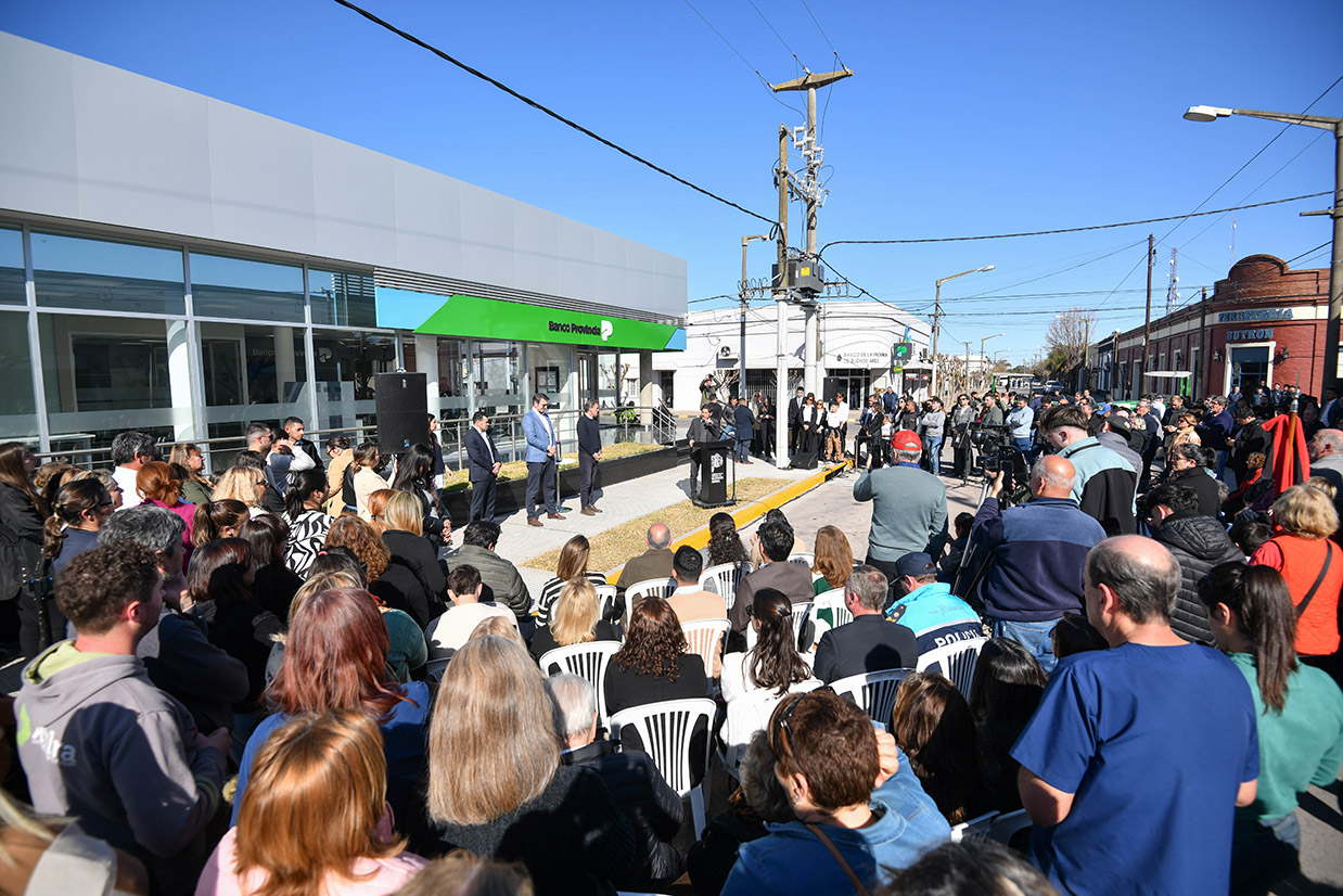 Además, el Gobernador inauguró el nuevo edificio de la sucursal del Banco Provincia en Casbas y anunció que la Provincia se hará cargo de obras paralizadas por el Gobierno nacional.