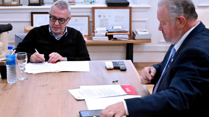 El intendente Julio Zamora y el titular de la institución, Gustavo Zorzoli, formalizaron la firma de un convenio para instruir en el área a alumnos y alumnas de 5to y 6to año de escuelas del distrito. El programa, además, ofrece la posibilidad a futuro de que puedan participar de las olimpíadas Ñandú y Mateclubes.