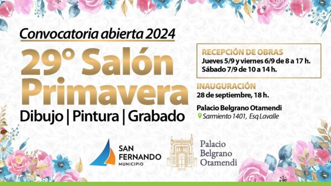 El Municipio de San Fernando, desde su Dirección Gral. de Cultura y Turismo, convoca a nivel provincial y nacional a artistas para presentar sus obras de dibujo, pintura y grabado en el “Salón Primavera” el salón de arte más prestigioso de la región.