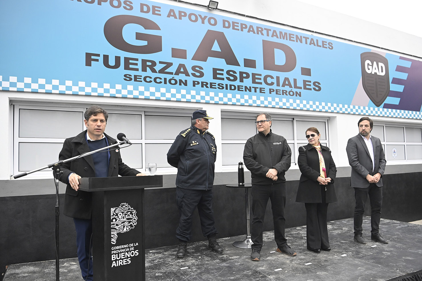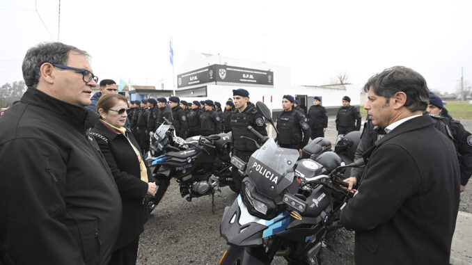 El gobernador de la provincia de Buenos Aires, Axel Kicillof, encabezó este martes en Guernica la inauguración de los destacamentos policiales de los grupos de Prevención Motorizada (GPM) y de Apoyo Departamental (GAD), junto al ministro de Seguridad, Javier Alonso; y la intendenta de Presidente Perón, Blanca Cantero. Además, entregó vehículos para las nuevas bases y puso en funcionamiento una ambulancia para fortalecer la gestión de emergencias en el municipio.