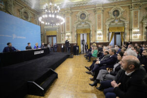 El gobernador de la provincia de Buenos Aires, Axel Kicillof, encabezó este jueves el acto de firma del tercer desembolso del Fondo de Fortalecimiento Fiscal Municipal (FFFM), que alcanza los $38.106 millones que serán transferidos a todos los municipios. Fue en el Salón Dorado de la Casa de Gobierno, junto a la vicegobernadora Verónica Magario; los ministros de Economía, Pablo López, y de Gobierno, Carlos Bianco; y 92 intendentas e intendentes bonaerenses.