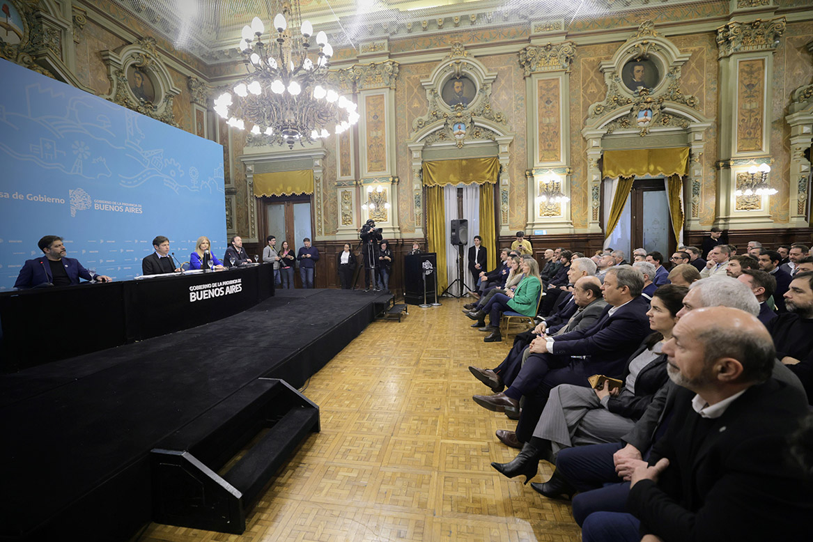 Estuvieron presentes las y los intendentes de Adolfo Gonzales Chaves, Alberti, Almirante Brown, Arrecifes, Ayacucho, Azul, Baradero, Benito Juárez, Berazategui, Berisso, Bolívar, Bragado, Brandsen, Cañuelas, Capitán Sarmiento, Carlos Casares, Carlos Tejedor, Carmen de Areco, Castelli, Chacabuco, Chascomús, Chivilcoy, Colón, Coronel Dorrego, Coronel Pringles, Coronel Rosales, Daireaux, Dolores, Ensenada, Exaltación de la Cruz, Ezeiza, General Alvear, General Arenales, General Belgrano, General Guido, General Las Heras, General Lavalle, General Madariaga, General Paz, General Pinto, General Rodríguez, General San Martín, General Villegas, Hipólito Yrigoyen, Hurlingham, Ituzaingó, La Plata, Las Flores, Leandro N. Alem, Lezama, Lincoln, Lomas de Zamora, Luján, Magdalena, Maipú, Malvinas Argentinas, Mar Chiquita, Marcos Paz, Mercedes, Merlo, Monte, Monte Hermoso, Moreno, Morón, Navarro, Necochea, Patagones, Pellegrini, Pila, Pilar, Presidente Perón, Punta Indio, Ramallo, Rauch, Rivadavia, Rojas, Roque Pérez, Saavedra, Salliqueló, Salto, San Andrés de Giles, San Fernando, San Pedro, Suipacha, Tapalqué, Tigre, Tordillo, Tornquist, Tres Arroyos, Tres Lomas, Veinticinco de Mayo y Villa Gesell.