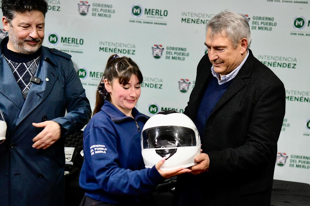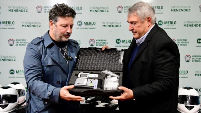 Este miércoles, el ministro de Transporte de la provincia de Buenos Aires, Jorge D’Onofrio, encabezó junto al intendente de Merlo, Gustavo Menéndez, la entrega de 88 cascos, 2 alcoholímetros y 2 alómetros para intensificar la seguridad vial de las y los vecinos.