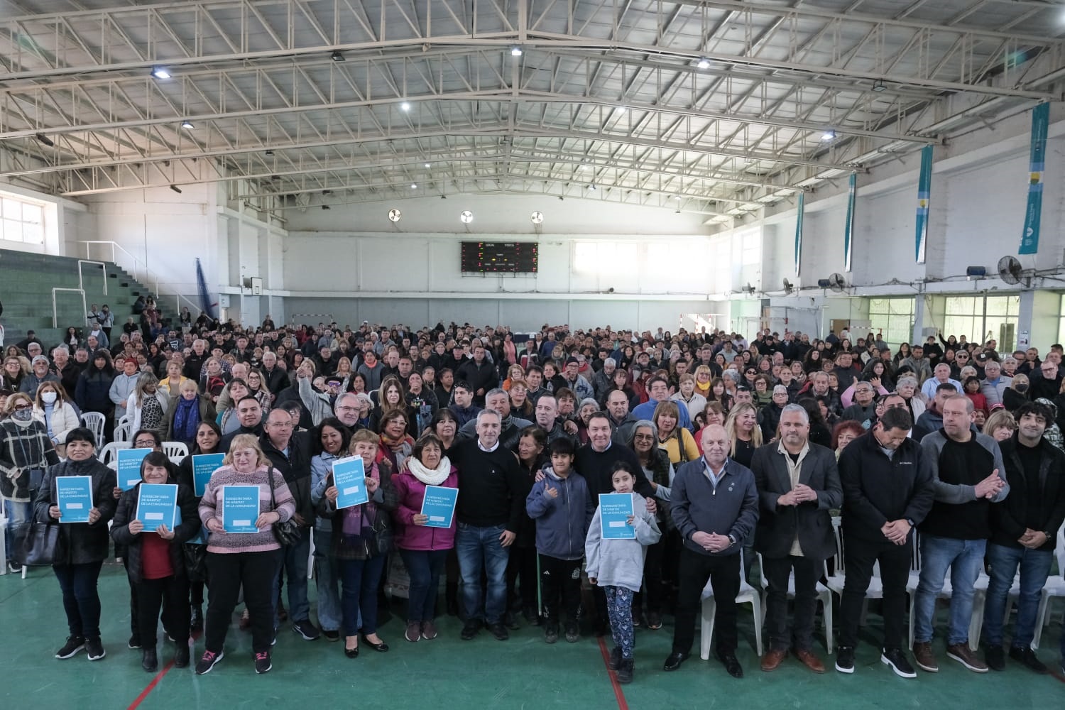 Durante la jornada, desarrollada en el Polideportivo municipal La Patriada, 426 familias recibieron sus escrituras en el marco de las acciones de regularización y consolidación de dominios.