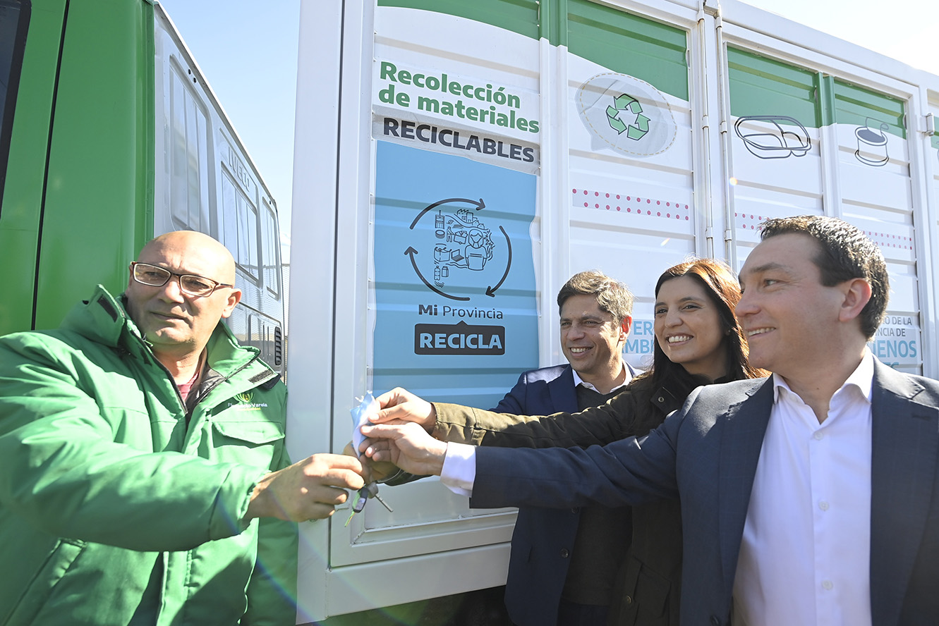 Durante la jornada, con la presencia de la ministra de Ambiente, Daniela Vilar, se entregaron nueve vehículos para la gestión de residuos y un kit de transición ecológica para la EES Nº14.