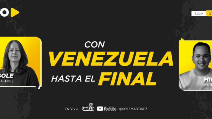 Este jueves 12 a las 18.30 hs te invitamos a sumarte a la charla en vivo entre Sole Martínez y Miguel Martínez en la que conversarán sobre la situación política en Venezuela. El encuentro será transmitido en vivo por los canales de YouTube y Twitch de Sole.