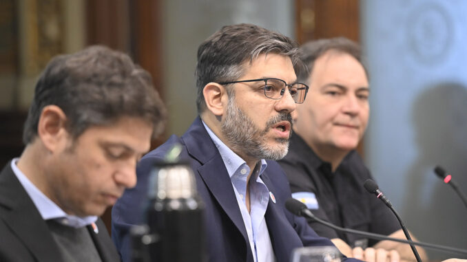 “No estamos aquí para quejarnos ni señalar a nadie, sino para pedirle nuevamente al Gobierno nacional que trabaje para que la Argentina no pierda la inversión de Petronas que ya estaba prevista para construir una planta en tierra destinada al procesamiento del gas natural licuado de Vaca Muerta”, afirmó el gobernador Axel Kicillof al encabezar este lunes una conferencia de prensa en el Salón Dorado de la Casa de Gobierno. Estuvieron presentes los ministros de Gobierno, Carlos Bianco; de Desarrollo de la Comunidad, Andrés Larroque; de Infraestructura y Servicios Públicos, Gabriel Katopodis y de Seguridad, Javier Alonso.