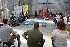 La comuna llevó adelante un nuevo encuentro para la instrucción de las y los empleados de la firma Recsa Poliuretano de Benavídez. La propuesta busca instruir en Reanimación Cardiopulmonar (RCP) y el uso de desfibrilador automático (DEA).
