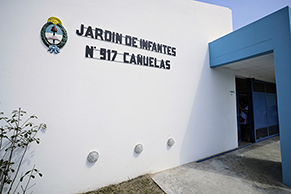 Durante la jornada, Kicillof y el director general de Cultura y Educación, Alberto Sileoni; inauguraron el nuevo edificio del Jardín de Infantes N°917 en la localidad de Máximo Paz. Está ubicado en el barrio Las Moras y permitirá sumar 60 cupos para ampliar su matrícula. Las instalaciones cuentan con tres aulas equipadas, SUM, dependencias administrativas y patio de juegos.