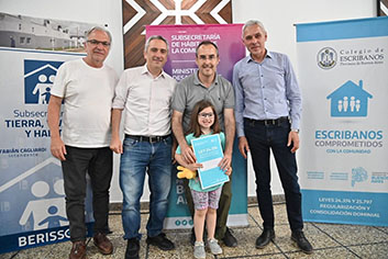 El ministro de Desarrollo de la Comunidad, Andrés Larroque, junto al intendente de Berisso, Fabián Cagliardi, otorgaron títulos de propiedad a 73 familias del distrito, en el marco de la iniciativa que lleva adelante el gobierno de la Provincia de Buenos Aires, a través de la Ley 24.374 de Regularización Dominial. Del acto, también participó el Subsecretario de Hábitat de la Comunidad, Rubén Pascolini.