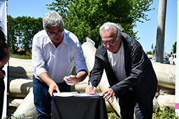 Junto al ministro de Desarrollo Agrario, Javier Rodríguez, el subsecretario de Hábitat de la Comunidad, Rubén Pascolini, suscribió una Carta de Intención con el objeto de llevar a cabo acciones tendientes a compartir capacidades técnicas y promover la aplicación de innovaciones para la construcción de viviendas y mejoras barriales, con productos generados a partir de la agricultura, la ganadería y la pesca.