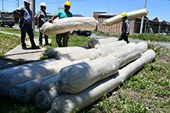 La actividad se llevó a cabo en el barrio Argentino de Melchor Romero de La Plata y contó también con la participación de la directora ejecutiva del Organismo Provincial de Integración Socio Urbana, Romina Barrios, e incluyó la entrega de 50 rollos de lana de oveja, material que se utiliza como aislante termo-acústico para mejorar la calidad de las viviendas. Este componente será utilizado, por un lado, en las viviendas del barrio donde el OPISU tiene intervención; y por el otro, en donde la Subsecretaría de este Ministerio desarrolla mejoramientos y/o soluciones habitacionales.