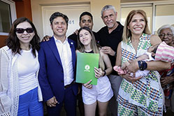 Durante la jornada, Kicillof, Ferraresi y la ministra de Hábitat y Desarrollo Urbano, Silvina Batakis, encabezaron también el acto de entrega de ocho viviendas para familias del Barrio La Saladita, en Sarandí, tras retomar con fondos municipales las obras que habían sido paralizadas por el Gobierno nacional.