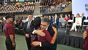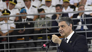 Luego, Jorge Macri les pidió romper el protocolo a los nuevos policías: “Sé que todos ustedes cadetes tienen la obligación de prestar atención a mí o a quienes hablaron antes. Pero ahora les pido que miren lo más importante que cada uno de ustedes tiene. Busquen en estas tribunas maravillosas a sus familiares que vinieron acá acompañarlos y las familias, y aprovechen para saludarlos”.