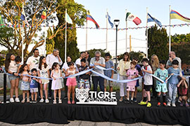 En Tigre centro, el intendente Julio Zamora y la secretaria de Desarrollo Social y Políticas de Inclusión, Gisela Zamora, encabezaron el acto de inauguración de la Plaza América Latina. Es el 97° espacio renovado por el Municipio, que cuenta con juegos para niños y niñas, mesa de ping pong, iluminación led, nueva parquización y mobiliario urbano.