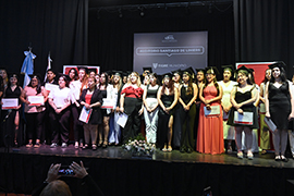La ceremonia comenzó con el ingreso de la bandera nacional, seguido del Himno argentino. Posteriormente, se realizó el cambio de abanderados y luego se llevó adelante la distinción a los alumnos destacados y la entrega de diplomas que cerró con el juramento profesional.