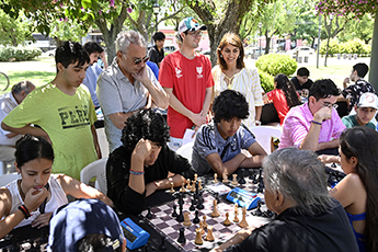 En la plaza de General Pacheco, el intendente de Tigre, Julio Zamora, y la secretaria de Desarrollo Social y Políticas de Inclusión, Gisela Zamora, acompañaron el clásico torneo de fin de año, organizado por la Escuela Municipal de Ajedrez. Participaron más de 120 vecinos y vecinas, incluidos alumnos de talleres, participantes del programa de ajedrez de escuelas, profesores y jugadores provenientes de la Liga del Norte.