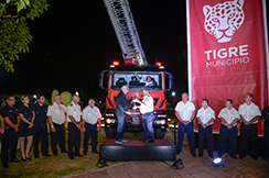 A su vez, el jefe comunal, junto al jefe de Bomberos de Tigre centro, Rodolfo Vandolino, presentaron oficialmente la nueva autobomba para la fuerza – mediante la colaboración del Municipio – que cuenta con una escalera de 55 metros de altura. «Este móvil es fruto del esfuerzo de la comunidad. Nosotros somos administradores circunstanciales, elegidos por la voluntad popular, y destinamos los recursos para el bienestar de las y los vecinos. El partido está creciendo muchísimo con edificios y esta es una herramienta importantísima para afrontar diferentes situaciones o siniestros», expresó el intendente.