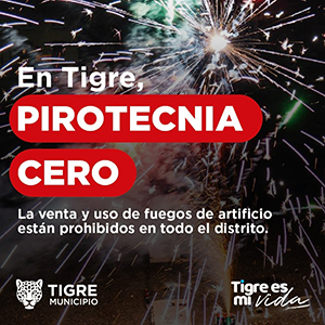 De cara a las fiestas por Noche Buena y Año Nuevo, se recuerda a la comunidad que en el Municipio de Tigre está prohibido el uso de pirotecnia. La medida fue decretada en el año 2022 por el intendente Julio Zamora y abarca tanto su utilización, tenencia, acopio, depósito, exhibición, fabricación, detonación y comercialización al público minorista o mayorista.