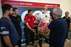 Como cada año, y en vísperas de una nueva Navidad, el intendente de Tigre, Julio Zamora, junto a la secretaria de Desarrollo Social y Políticas de Inclusión, Gisela Zamora, realizó su tradicional recorrida por diferentes instituciones y dependencias municipales que brindarán servicio y atención durante la Nochebuena. Comenzó en las Casas Convivenciales de El Talar; luego se trasladó al Centro de Operaciones Tigre (COT), y culminó en el cuartel de Bomberos Voluntarios de Benavídez.