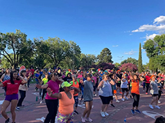 Los encuentros – organizados por el área de Deportes del Gobierno comunal – son clases abiertas y gratuitas de zumba y ritmos (elongación muscular y movilidad articular).