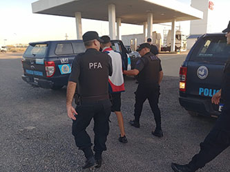 En tal sentido, la Superintendencia de Agencias Federales de la Policía Federal Argentina, compulso los distintos tipos de empresas de micros larga distancia, como de aeronaves que tienen destino la provincia mencionada, arrojando que los identificados Santiago Enrique Medina D.N.I. N° 47.388.171, de 18 años, Enzo Ariel Quinteros D.N.I. N° 45.199.566, de 21 años, ambos domiciliados en la localidad de Lomas de Zamora; quienes se encontraban trasladando mediante Micro de la empresa Pulqui, interno 43. Por tal motivo, se trazó un dispositivo cerrojo en las Provincias de Santa Fé, Chaco y Formosa, con el objeto de ubicar al micro y los delincuentes que transportaba, procediéndose sobre Ruta Nacional 11, a la altura de la localidad de San Justo; a la detención del micro y la detención de los masculinos buscados.