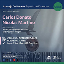 Carlos Donato y Nicolás Martino regalan una muestra de escultura de piezas muy importantes en su recorrido artístico. En la abstracción de las piezas se pueden encontrar formas sugestivas que llevan al espectador a transitar una introspección y jugar con la imaginación gracias a sus elementos ambiguos y de simbolismo poético.