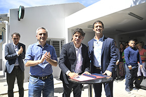 Asimismo, el Gobernador y el ministro de Desarrollo de la Comunidad, Andrés Larroque, firmaron un acta para ejecutar 600 mejoras habitacionales en viviendas de distintos barrios del municipio, y suscribieron un convenio para fortalecer el Centro de Formación Integral “Redondel” y promover así la inserción laboral de personas con discapacidad.
