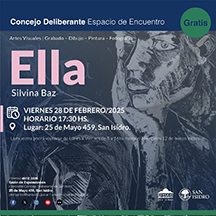 La exposición multidisciplinaria “Ella” se inaugurará el viernes 28 de febrero, a las 17.30, en el Concejo Deliberante de San Isidro (25 de Mayo 459). Entrada libre y gratuita.