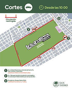 Habrá tres accesos peatonales: serán por la esquina de las avenidas Santa Fe y Márquez; por Av. Márquez al 900, en la entrada Paddock del Hipódromo; y por Av. Márquez a la altura de la entrada oficial del Hipódromo. Los autos ingresarán al estacionamiento por Av. Santa Fe y Av. de la Unidad Nacional, y Av. Fleming y Av. Márquez. El Municipio recomienda a los vecinos evitar circular por esta zona durante el festival.