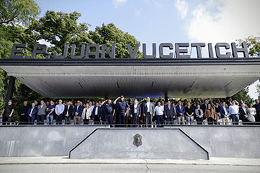 Estuvieron presentes la jefa de Asesores del Gobernador, Cristina Álvarez Rodríguez; los ministros de Gobierno, Carlos Bianco; y de Economía, Pablo López; el jefe de la Policía provincial, Javier Villar; y el subjefe, Leandro María Sarlo; el director de la Escuela Juan Vucetich, Comisario Mayor Rino Liva; funcionarios y funcionarias provinciales.