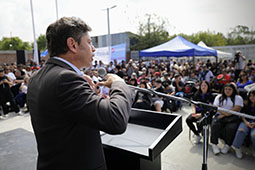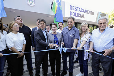 El gobernador de la provincia de Buenos Aires, Axel Kicillof, inauguró este jueves el nuevo edificio de la Escuela Secundaria N° 11 del municipio de Presidente Perón, donde además puso en funcionamiento un destacamento policial en la ciudad de Guernica. Fue junto al director general de Cultura y Educación, Alberto Sileoni; el ministro de Seguridad, Javier Alonso; la intendenta local, Blanca Cantero; y la directora de la institución educativa Claudia Gómez.
