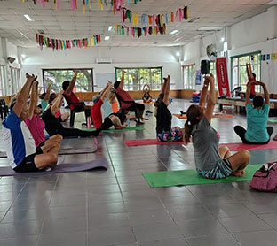 La clase estuvo a cargo de profesores, quienes ejecutaron diferentes técnicas de la disciplina. El yoga permite reducir la presión arterial, ayuda a relajar el cuerpo, dormir mejor y mejora la digestión. Además, afianza la confianza y coordinación corporal.