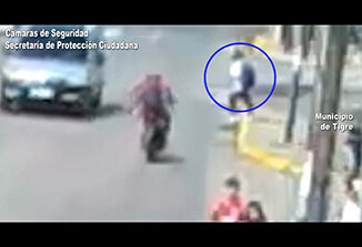 Registrado por las cámaras del COT. Una motocicleta atropelló a un vecino en Ricardo Rojas: la víctima está fuera de peligro