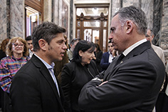 “Hoy lamentablemente hay algunos dirigentes que tienen la mirada puesta en las grandes potencias antes que en los países que transitan una historia similar y tienen un camino común”, sostuvo Kicillof y añadió: “Sin embargo, en la Argentina lo que predomina es un sentimiento de unidad latinoamericana y de mucho respeto con Uruguay: sabemos que cualquier proyecto nacional requiere, antes que nada, fortalecer los vínculos regionales”.