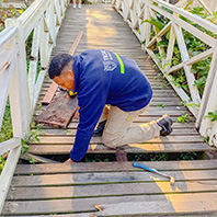 La cuadrilla del Gobierno local llevó adelante diversos trabajos de reparación en puentes y alumbrado público. A su vez, se ejecutaron tareas en la pasarela de acceso a la biblioteca del Museo Casa Domingo F. Sarmiento y parquización en el Centro de Salud ubicado en el río Carapachay.