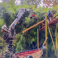 Personal del Gobierno local efectuó la colocación de una nueva escalera sobre el puente en altura en el arroyo Rama Negra Chica y la reparación de la pasarela ubicada paralelamente al destacamento policial sobre el río Capitán.