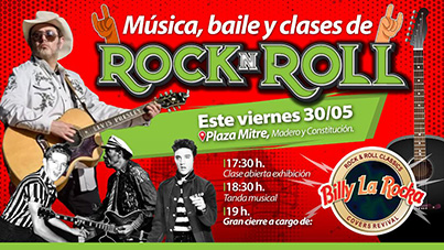 El Municipio de San Fernando invita a vecinas y vecinos este viernes 30 desde las 17.30h a la plaza Mitre (Constitución y Madero) donde habrá una clase abierta, exhibición de Rock and Roll, con covers y música en vivo, y el gran cierre de “Billy La Rocka” a las 19h.
