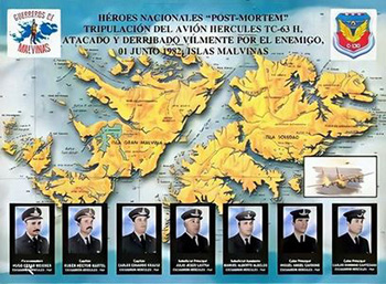 El 1º de junio de 1982, en plena guerra de Malvinas, durante una misión de exploración y reconocimiento de los denominados «Vuelos Locos» es derribado sobre el mar el avión Hércules C-130 – matricula TC 63 – indicativo «TIZA», al ser alcanzado por misiles entre los motores del lado derecho, por una sección de aviones británicos Sea Harrier (PAC) y cuando aún se mantenía en vuelo, intentando amerizar, fue atacado con cañones sobre sus áreas de comando y se estrelló en el mar.