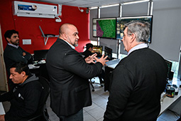 Previo al encuentro con el intendente Zamora, Frontera recorrió las instalaciones de la central de monitoreo del COT junto al secretario de Protección Ciudadana, Jorge Fernández. Allí, se interiorizó de todo el trabajo desarrollado por el Municipio con los dispositivos de videovigilancia, las oficinas de CiberCOT, de video análisis y las diversas herramientas tecnológicas para combatir el delito en el distrito.