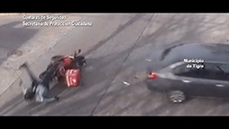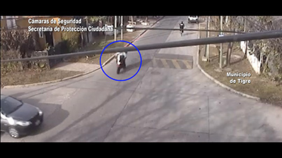Las cámaras de videovigilancia del Centro de Operaciones Tigre (COT) registraron el accidente de tránsito en la intersección de las calles Garibaldi y José C Paz. Los agentes locales alertaron el hecho y activaron el procedimiento correspondiente. Médicos del Sistema de Emergencias Tigre trasladaron al hombre que realizaba delivery al hospital más cercano.